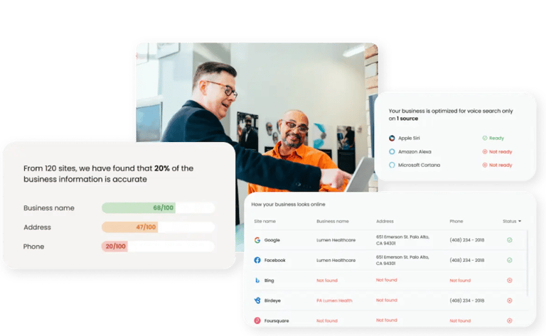 Scan your business for free to uncover actionable insights on how to fix business listings on 50+ sites.